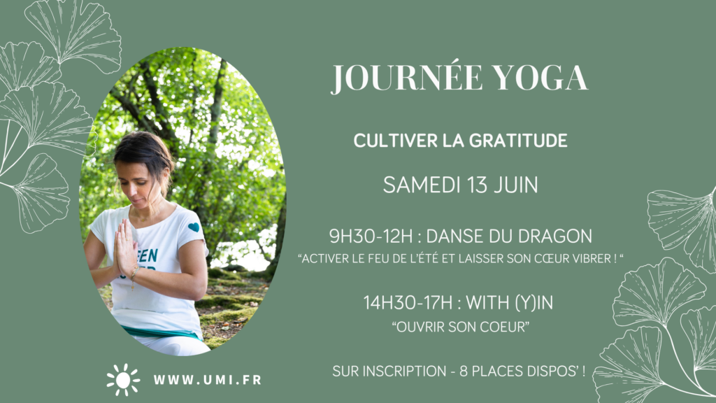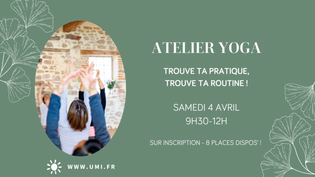 De manière mensuelle, j’organise des ateliers et des événements autour du yoga ou de la méditation. Ils ont lieu dans mon studio situé à la Roche-sur-Yon ou ailleurs en Vendée.